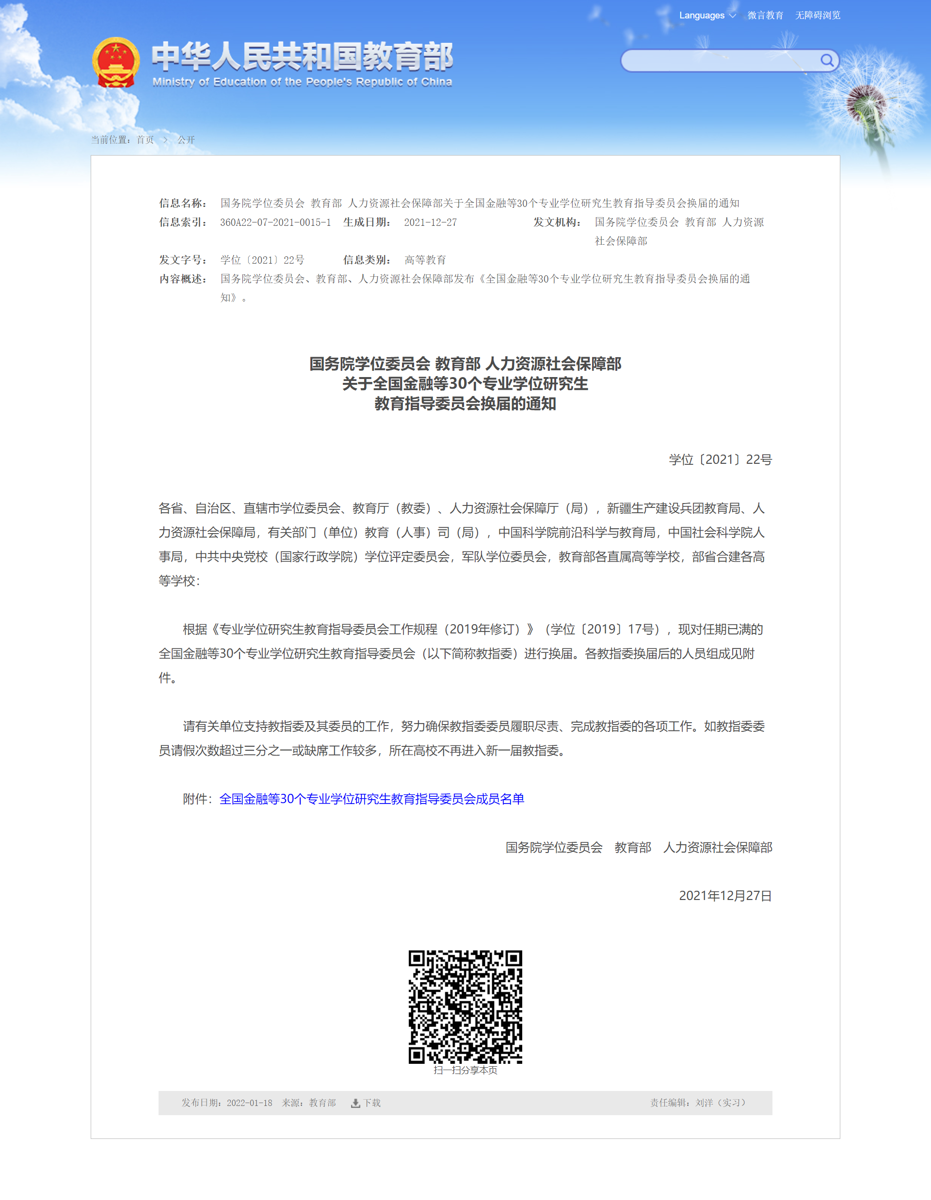 近日,国务院学位委员会、教育部、人力资源社会保障部公布了全国30个专业学位研究生教育指导委员会新一届委员名单,伟德国际victor1946主任赵军峰教授当选第四届全国翻译专业学位研究生教育指导委员会副主任委员。