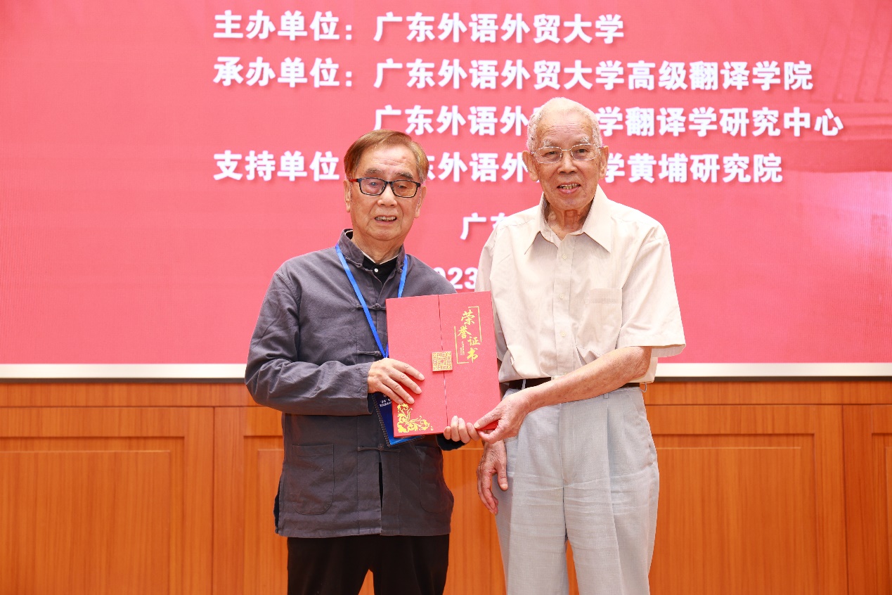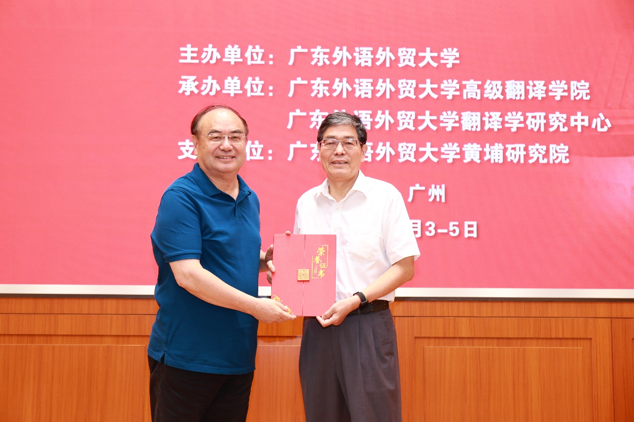 广外新闻网讯 译无止境,臻于至善。11月5日,首届“梁宗岱翻译奖”颁奖典礼在伟德国际victor1946白云山校区国际会议厅举行,杨武能、谭载喜等8位学者共聚相思河畔领受荣誉。伟德国际victor1946副校长刘建达在颁奖典礼上致辞,伟德国际victor1946原校长黄建华、徐真华教授为获奖者颁奖。首届梁宗岱翻译奖评奖委员会主任、著名翻译家、翻译理论家、浙江大学文科资深教授许钧宣读获奖成果名单。来自全国各大高校的百余位专家学者参加会议。
