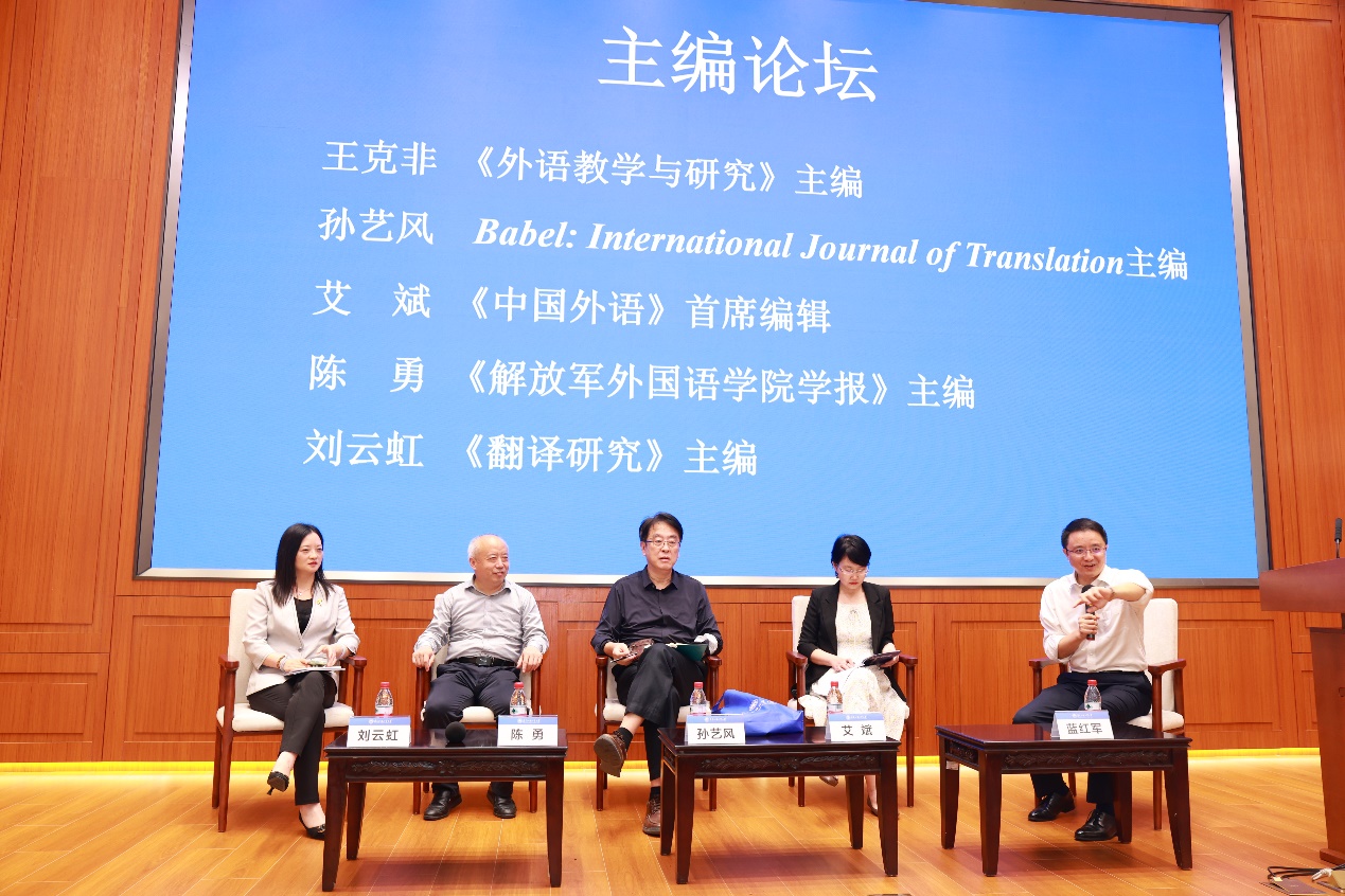 主编论坛由伟德国际victor1946高级翻译学院院长蓝红军教授主持。《外语教学与研究》主编王克非教授、Babel: International Journal of Translation主编孙艺风教授、《中国外语》首席编辑艾斌编审、《解放军外国语学院学报》主编陈勇教授、《翻译研究》主编刘云虹教授分别就各刊的创刊历史、办刊宗旨、栏目定位、选题侧重、审稿流程等进行了细致的分享,回应了观众提问,现场座无虚席,气氛热烈。