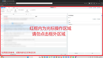 4)答题区域:以下展示的为答题页面示例截图,其中红色边框标识的区域内为允许光标活动的操作区,超出该区域的点击操作均会被系统识别为屏幕切换行为。