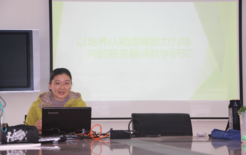 The 19th forum started with a presentation given by Lan Keran, Ph.D candidate, on the topic “On fostering cognitive competence in teaching business English texts”. Ms Lan’s presentation covers five parts: special features of teaching business English, features of business texts and the status quo, relevant research methods and case analysis. She introduced the relevant theories that help enhance the translator’s cognitive competence include Frame Semantics, Contextual Parameter Theory and Conceptual Blending Theory, among which frames are applied to constructing business textual frames at the macro level, while Conceptual Blending Theory is used to interpreting the meaning at the macro level. According to Ms Lan, the Contextual Parameter Theory could be integrated to effectively provide descriptive, explanatory, and operative analyses of the business English texts, especially for coping with those difficult language problems such as business metaphors. Ms. Lan illustrated her analysis of typical examples from business news which are very interesting to those present.